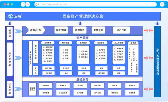 云呐资产致力于为单位公司、银行、政府事业单位、学校教育类、医疗类、交通类、通信类等行业提供一站式数字化固定资产管理系统解决方案。
