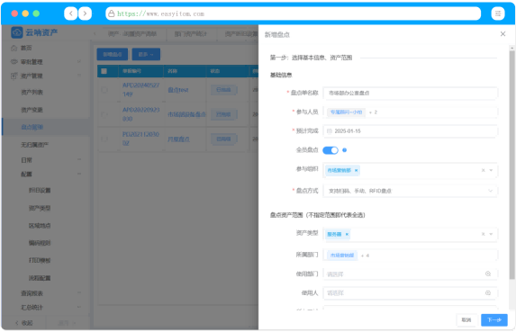 2、系统提供按部门、存放地点分级进行盘点的功能。