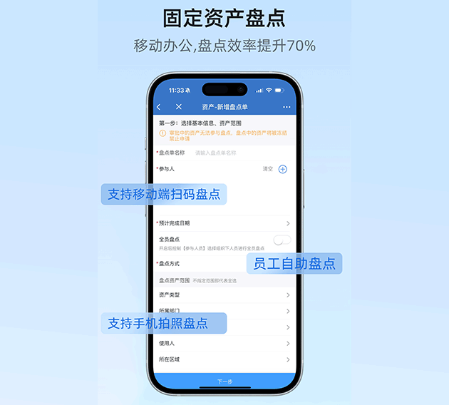 精确高效的固定资产管理系统,从资产采购到报废,全生命周期一站式管理,固定资产管理效率提升70%。告别繁琐盘点,数据更精确。支持个性化定制,适配不同企业需求。