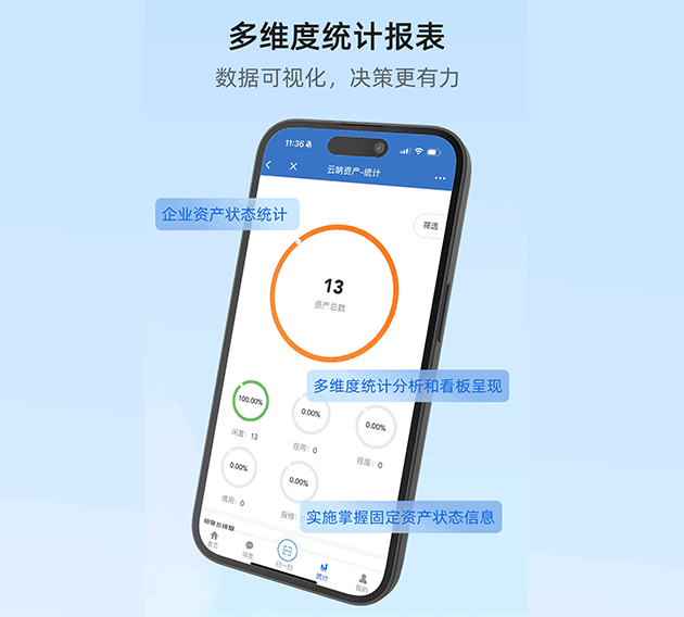 云呐资产让决策不再等待。数据丰富的功能和可视化图表模板,快速生成报表,满足企业数据分析和可视化展示需求;针对性监测业务核心指标,实现数据化、精细化管理。